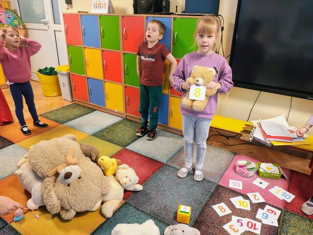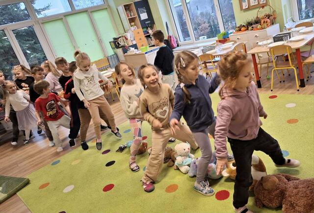 Dzieci opowiadały o swoich ulubionych pluszakach, uczestniczyły w „misiowych” zabawach ruchowych, rozwiązywały zadania, a także wysłuchały historii o tym, jak pluszowy miś stał się najwierniejszym przyjacielem dzieci na całym świecie.