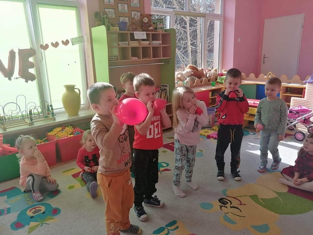 Nasze przedszkolaki wzięły dziś udział w różnego rodzaju zabawach, konkurencjach sportowych i zabawach ruchowych, którym towarzyszła muzyka i świetna zabawa.