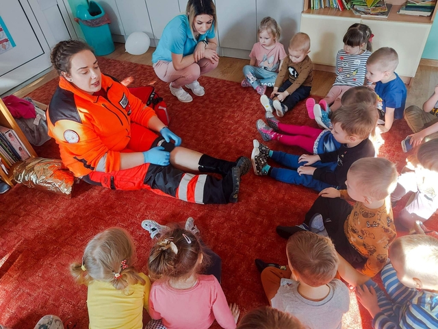 W Przedszkolu Publicznym nr 11 dzieci uczestniczyły w zajęciach z zakresu udzielania pierwszej pomocy przedmedycznej. Celem takich zajęć jest kształtowanie pozytywnych postaw oraz zapoznanie najmłodszych z podstawowymi czynnościami ratowniczymi. Przedszkolaki dowiedziały się w jaki sposób udziela się pierwszej pomocy zanim przyjedzie pogotowie ratunkowe. Dzieci z zainteresowaniem słuchały wskazówek dotyczących zachowania się w sytuacji zagrożenia życia np. utraty przytomności, złamania, zadławienia, czy skaleczenia. Dzieci utrwaliły wiedzę na temat podstawowych numerów alarmowych, oraz jak wezwać pomoc przez telefon. Przedszkolaki wiedzą do kogo zwracać się, gdy czują się zagrożone. Zgromadzoną wiedzę będą mogły wykorzystać w przyszłości przychodząc z pomocą koledze lub swoim najbliższym. To dzięki takim akcjom i praktycznym działaniom nabierają wprawy. To tu w przedszkolu rodzą się mali bohaterowie, na których będziemy mogli liczyć w każdej sytuacji. Serdecznie dziękujemy Pani Aleksandrze Guzik za wspaniały pokaz i poświęcony czas.