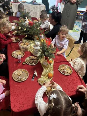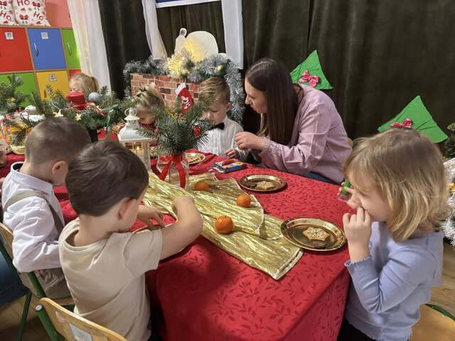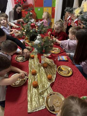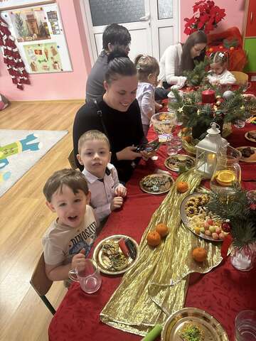 17 grudnia w grupie Krasnoludki odbyły się warsztaty bożonarodzeniowe z udziałem rodziców. Podczas spotkania wspólnie łamaliśmy się opłatkiem i składaliśmy sobie świąteczne życzenia, tworząc ciepłą i rodzinną atmosferę.