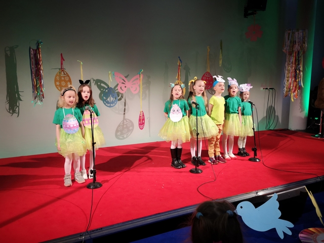 Biedronki i Plastusie jako przedstawiciele Przedszkola Publicznego nr 11 podczas wiosennych prezentacji artystycznych na "Wielkanocnym Ryneczku" w Ostrowiecki Browar Kultury
